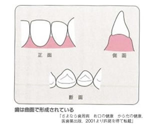 図を見てください。歯は平面ではなく曲面で形成されていることがわかると思います。