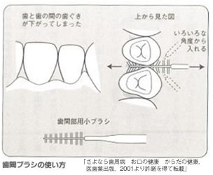 歯間ブラシという針金の両側に毛がたくさんついた歯間ブラシを用います。